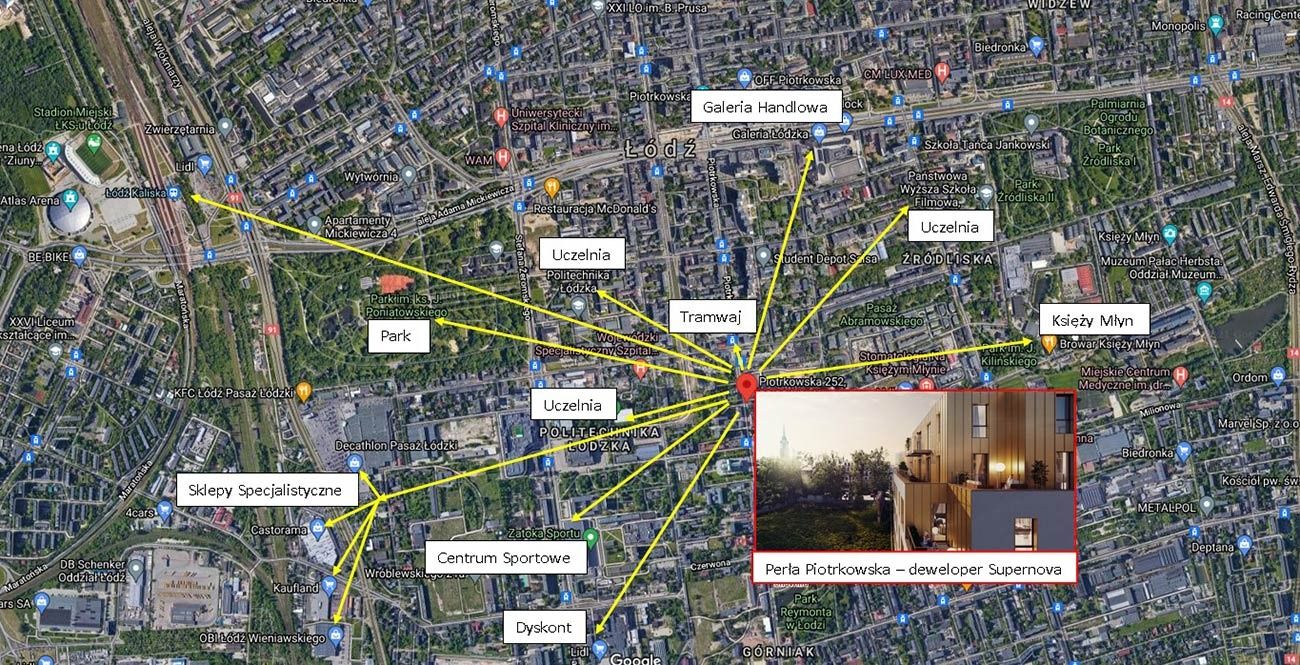 **Lokalizacja w samym centrum Łodzi w pobliżu najbardziej rozpoznawalnych punktów na mapie miasta, uczelni wyższych, licznych miejsc pracy, kultury, rozrywki i sportu, a przede wszystkim głównego deptaka.