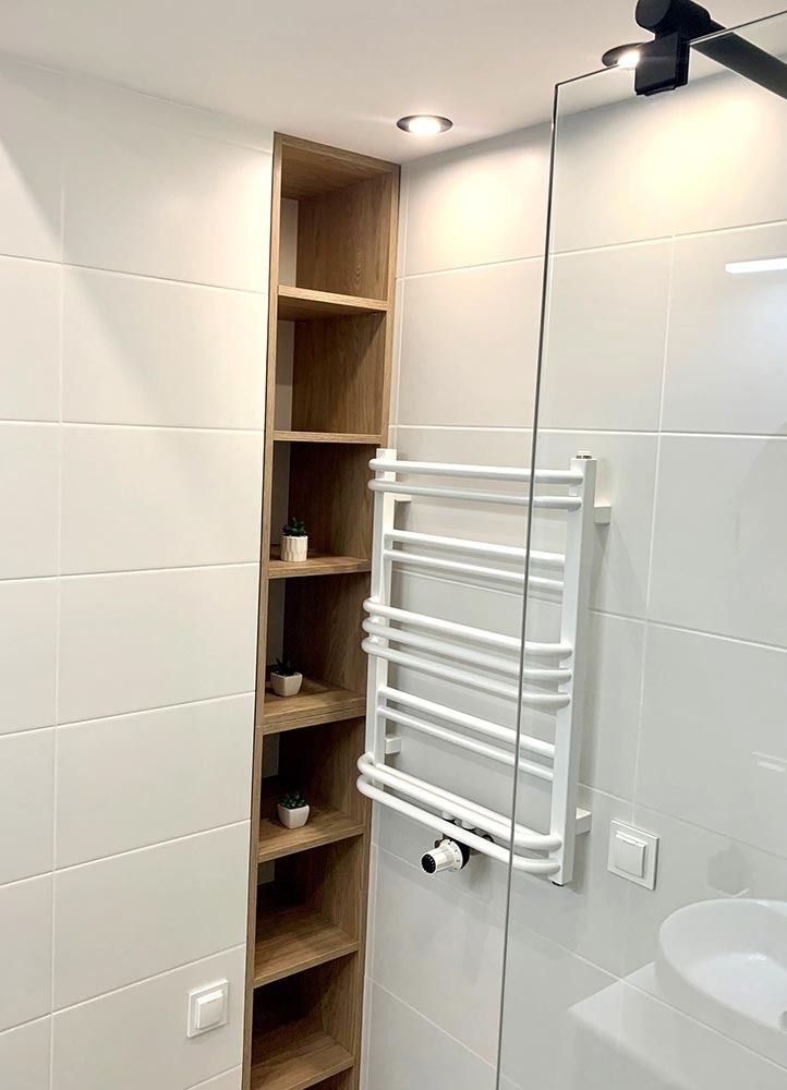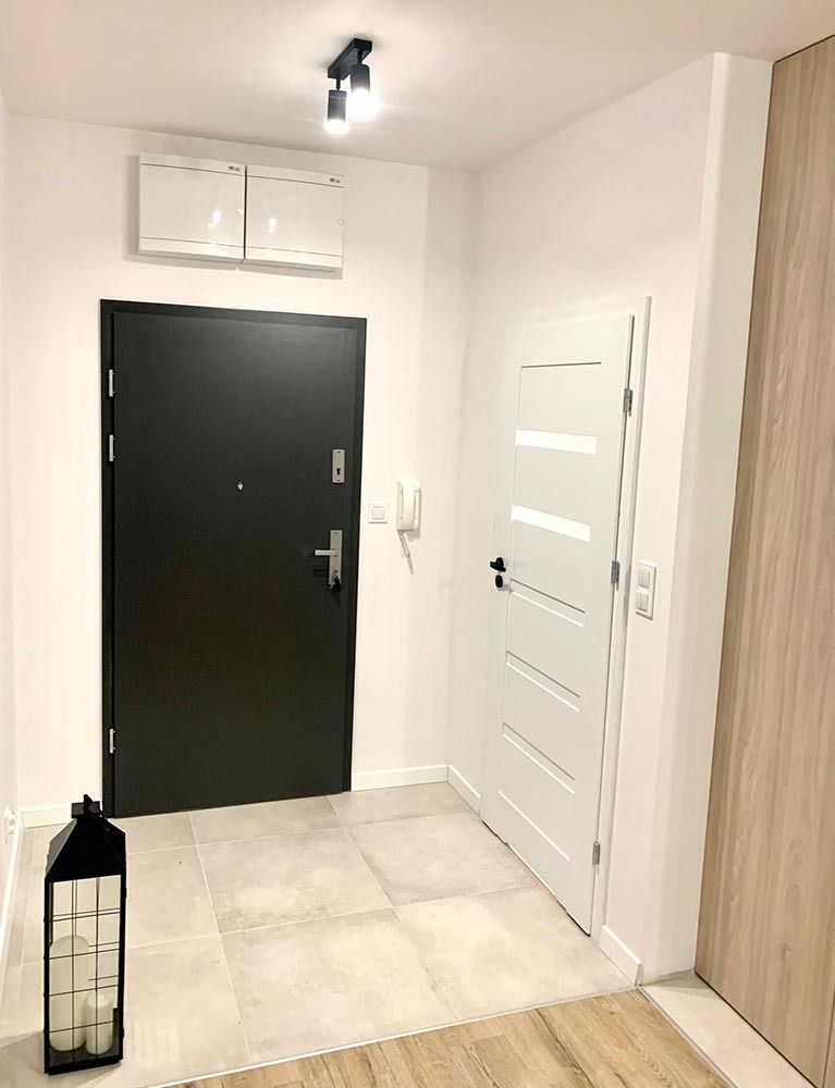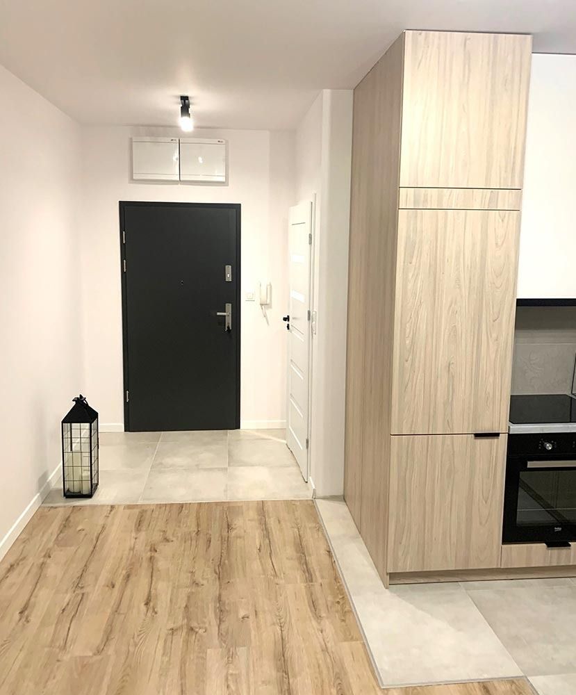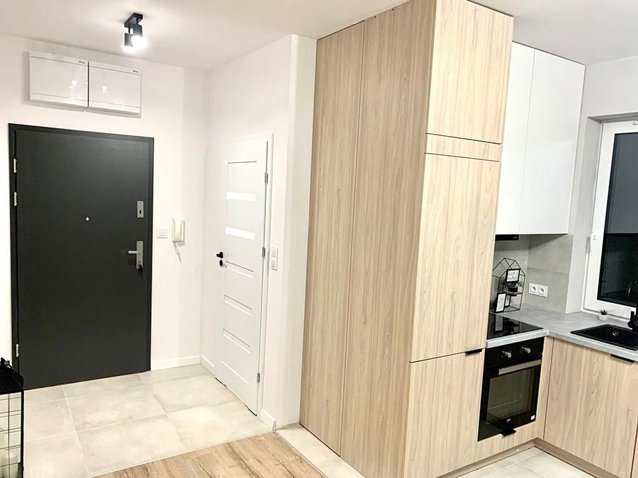 Mieszkanie zostało wykończone w wysokim standardzie. Podczas prac wykonano zabudowy z GK, ułożono wysokiej jakości gres na podłodze w korytarzu i aneksie kuchennym oraz panele w części dziennej. W kuchni znajdują się wykonane na wymiar meble kuchenne wraz z eleganckim betonem strukturalnym. W zabudowie znajduje się sprzęt AGD: lodówka, zmywarka, piekarnik, płyta indukcyjna oraz okap podszafkowy. W łazience położno gres i glazurę, wykonano kabinę prysznicową z odpływem walk-in, jak również zabudowy meblowe na wymiar. W lokalu znajdują się drzwi zewnętrze, antywłamaniowe. Zamontowano także oświetlenie w technologii LED oraz listwy przypodłogowe.