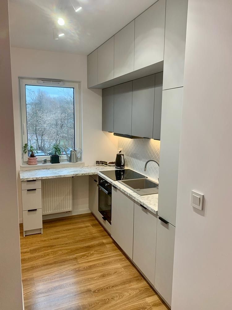 - meble kuchenne z blatem o wysokiej odporności 38 mm oraz szafy na zamówienie z pracowni stolarskiej