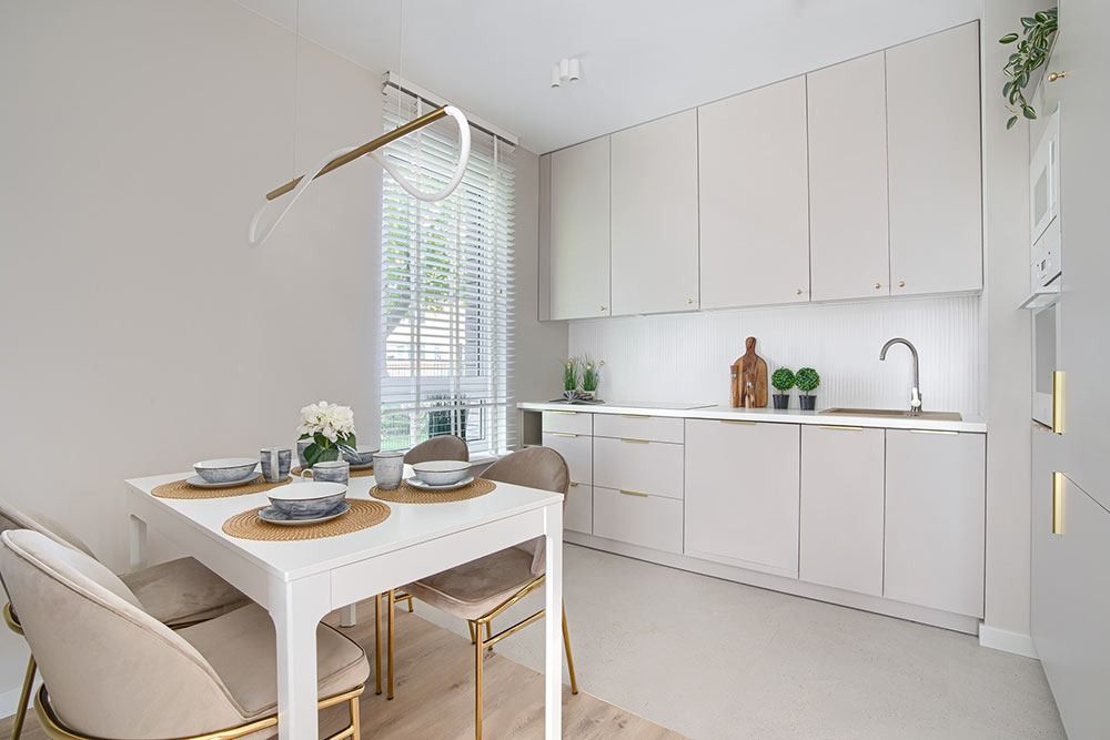 Przestronny salon połączony z kuchnią i jadalnią to serce tego mieszkania. Kuchnia w zabudowie, w pełni wyposażona, z dużym oknem zapewniającym naturalne światło. Salon z wyjściem na taras i piękny ogród stanowi idealne miejsce do wypoczynku i spędzania czasu z rodziną.